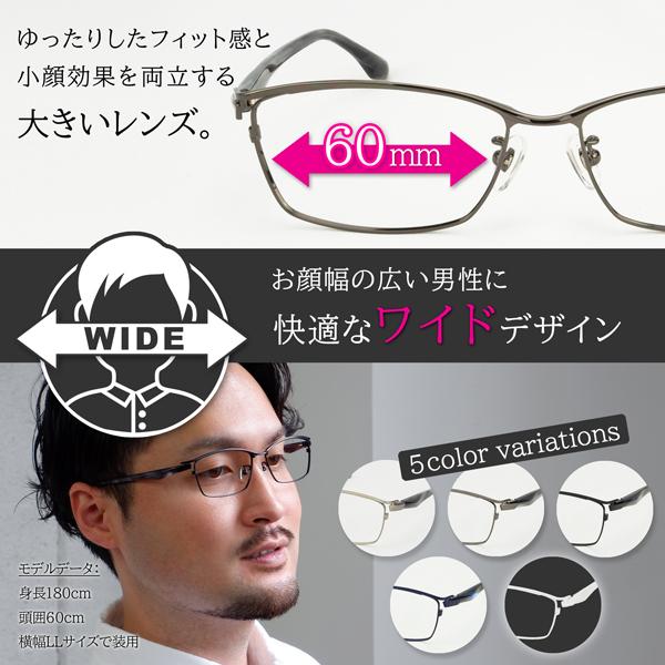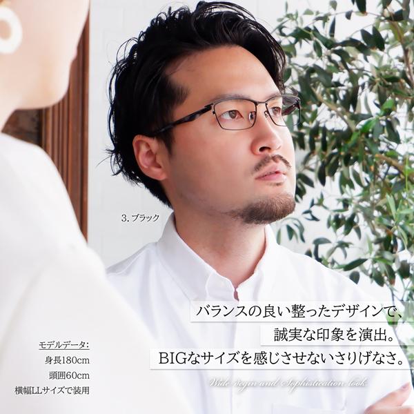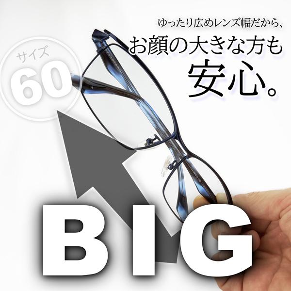 メガネ 大きい サイズ ビッグ メタル フレーム メンズ 度付き 眼鏡 伊達 めがね ダテ ブルーライト PC 60サイズ 大きい顔 ブラック ホワイト