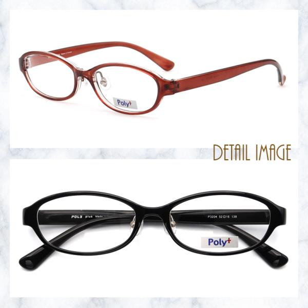 (2026/03/27 再入荷)P3204 52サイズ シンプルデザイン 軽量 TR90 グリルアミド レンズ付き眼鏡セット Poly+ メガネ通販 めがね 度付きメガネ