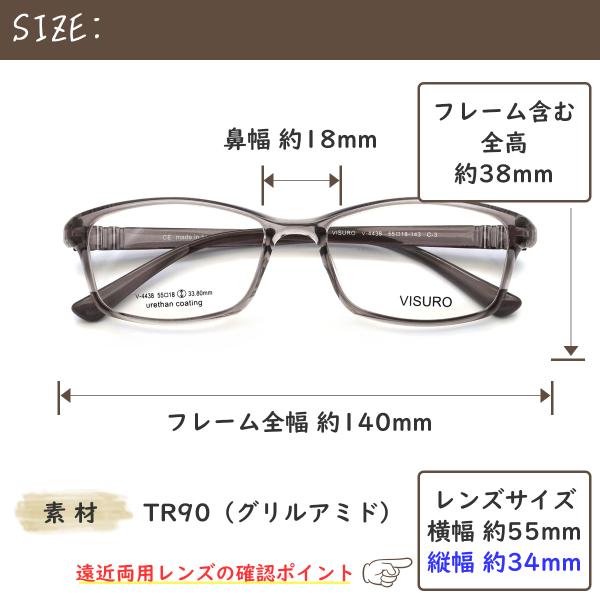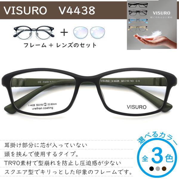 V4438 55サイズ VISURO 軽量 TR90 グリルアミド レンズ付き眼鏡セット メガネ通販 めがね 伊達眼鏡 伊達めがね 度付きメガネ