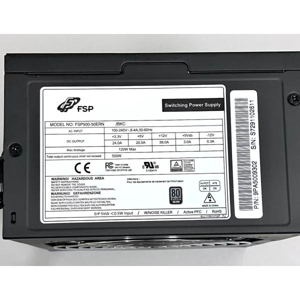 YM0068★中古★FSP FSP500-50ERN コンピュータ サイレント ビッグ ファン 電源 80 プラス シルバー 寸法15cm*14cm*8.5cm