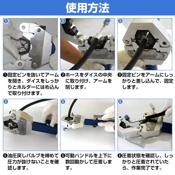 エアコンホースの加工に便利! 油圧クリンパー 加締め かしめ工具 エアコンホース 口金固定 コンプレッサー 自動車 ダイス 油圧式 整備