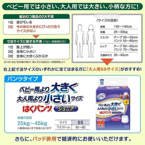 リフレ 大人用紙おむつ パンツ 介護 オムツ SS はくパンツ ジュニア SSサイズ 20枚×8袋 ss 大人用 大人用紙パンツ 紙おむつ 紙パンツ ぱんつ 女性用 男性用