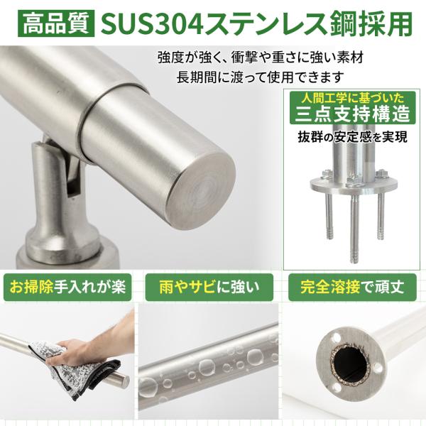 手すり 屋外 屋内 階段 玄関 手摺 段差 横幅80cm てすり ステンレス製 防錆 介護 高齢者 頑丈タイプ 耐久性 水平置き 玄関ポーチ 角度調整 高さ86cm 爆買