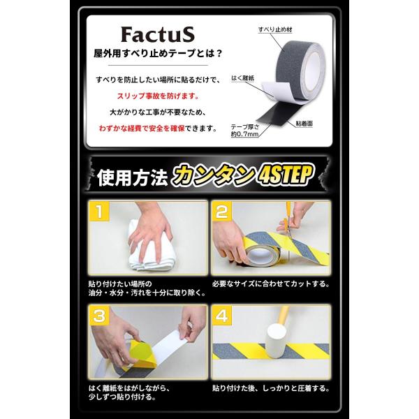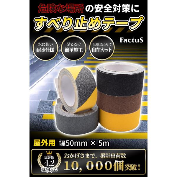 滑り止めテープ 屋外 階段 強力 50mm×5m 屋外用 すべり止め 転倒防止 防水 鉄板 スロープ 床 業務用 粘着 段差 外階段 コンクリート 耐水 貼るだけ簡単 Factus