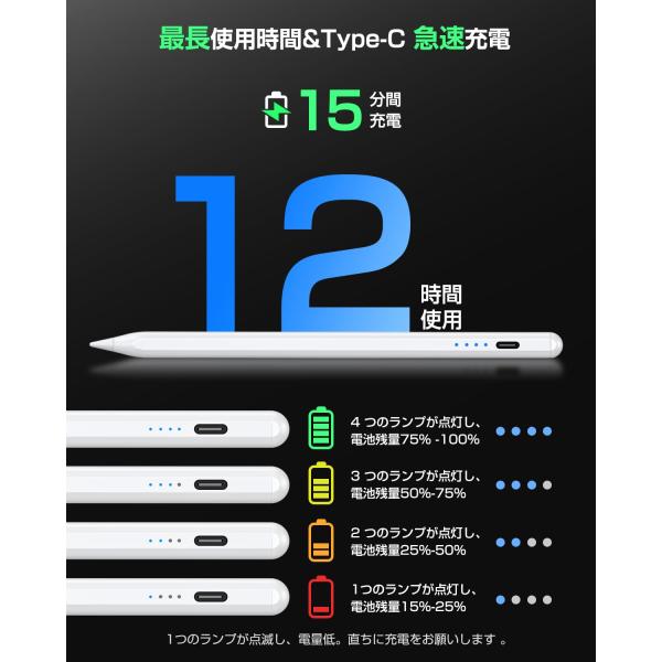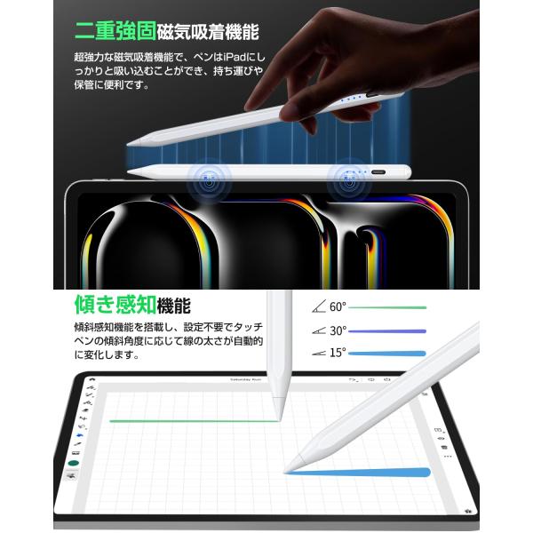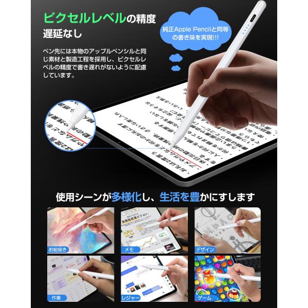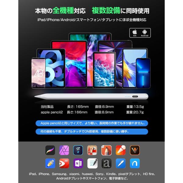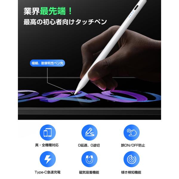 KINGONEタッチペン【 2025業界最高 全機種対応 超高速充電】スタイラスペン 超高精度 1MM極細 アップルペンシル互換ペン 誤ON/OFF防