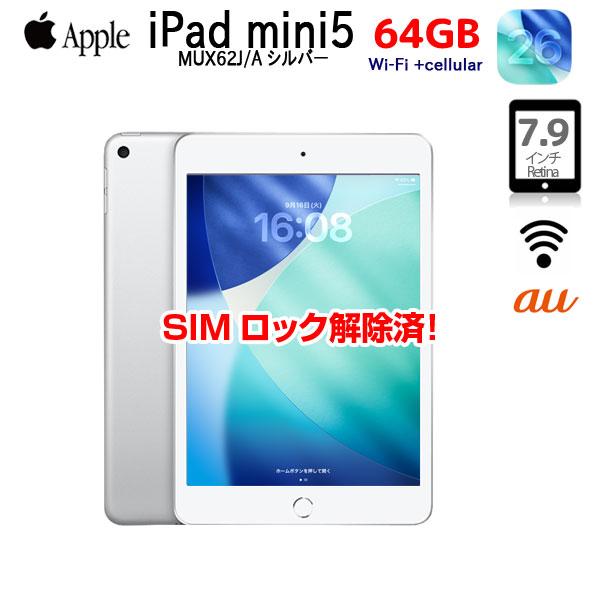 【4/1-13まで特価+モバイルバッテリ】Apple iPad mini5 MUX62J/A A2124 第5世代 au Wi-Fi-cel 64GB [ A12 SSD64GB 7.9 iPadOS 26 シルバー ] :良品 中古