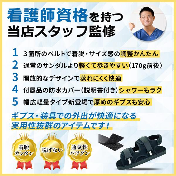 ギプスサンダル シューズ ギブス カバー 子供 メンズ レディース 軽量 つま先 片足 防水カバー付 看護師監修