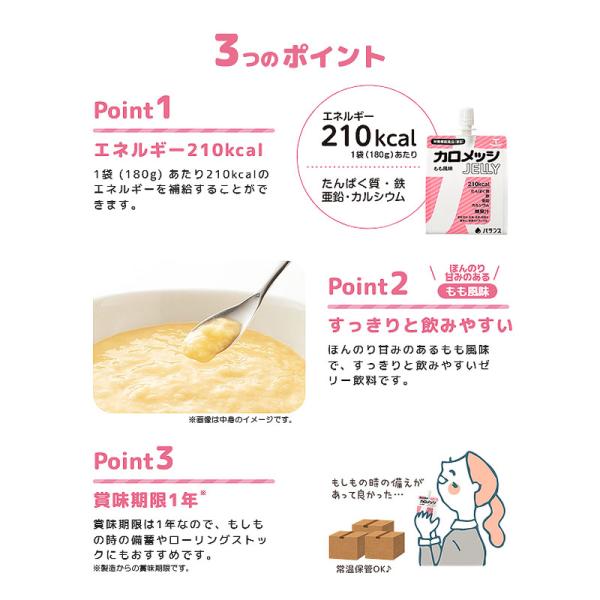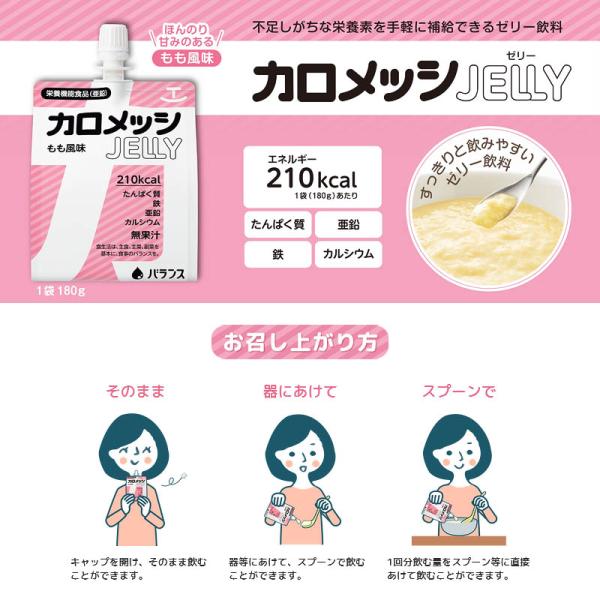 カロメッシゼリー もも風味 (180g×6袋) バランス 栄養機能食品 亜鉛 210kcal たんぱく質 鉄 カルシウム ゼリー飲料 エネルギー補給 (1袋 210kal) 無果汁 JELLY