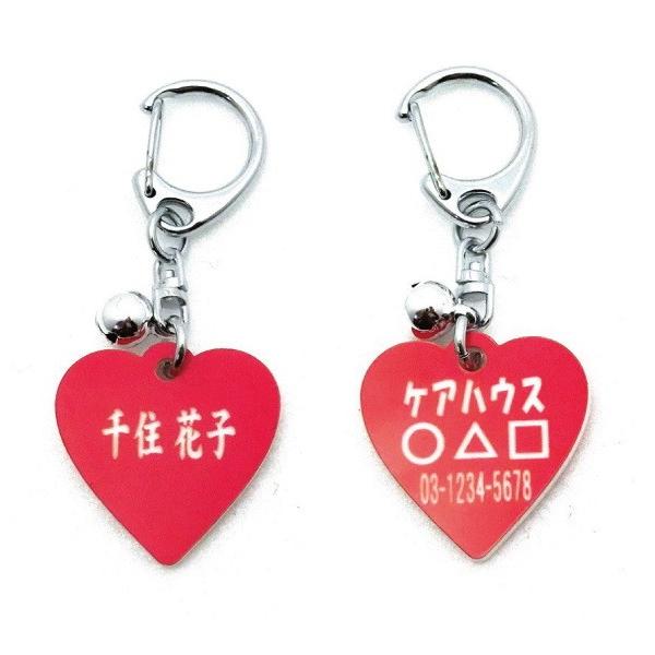 名前と電話番号が入る高齢者見守りキーホルダーハート型レッド8002