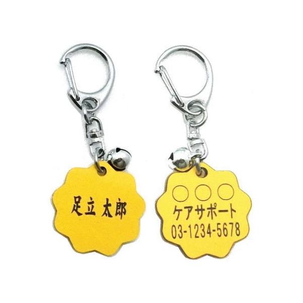 名前と電話番号が入る高齢者見守りキーホルダー花型イエロー8003