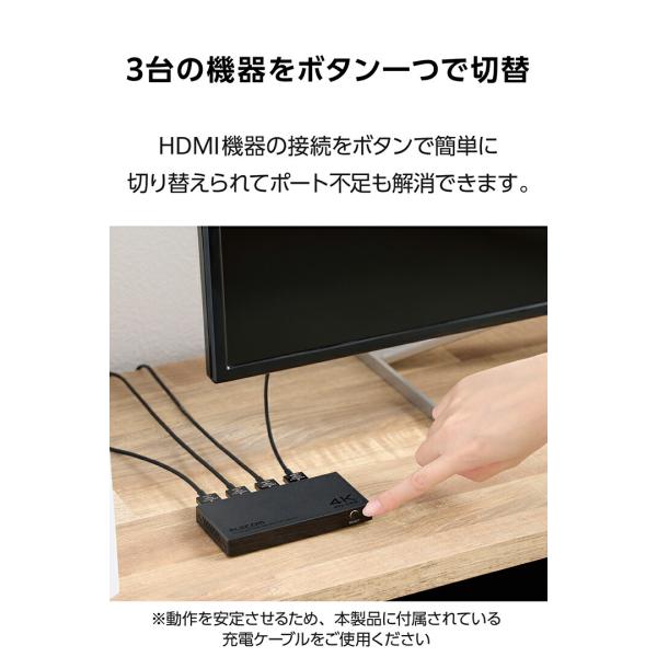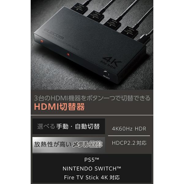 エレコム HDMI切替器 3入力HDMI + 1出力HDMI 4K60Hz対応 メタル筐体 HDMI 切替器 ブラック DH-SW4KB31BK/E