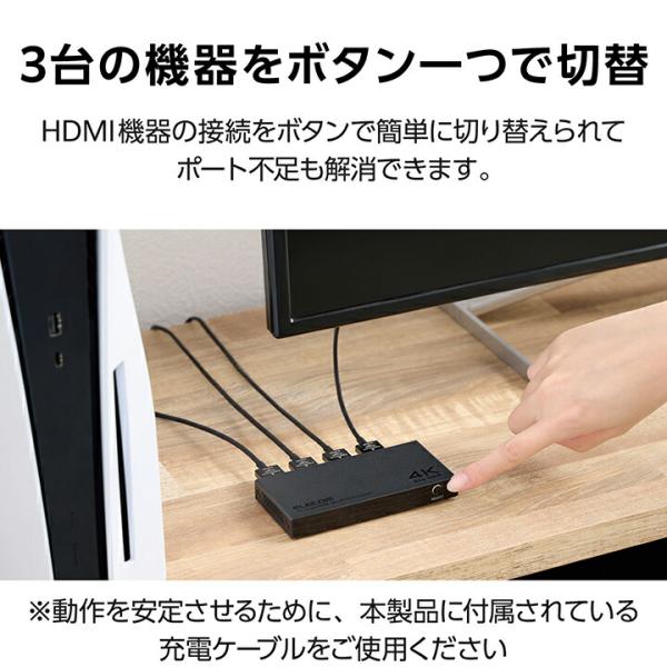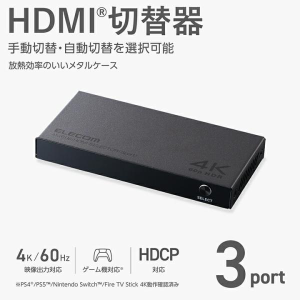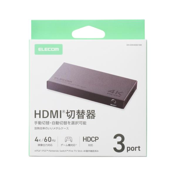 エレコム HDMI切替器 3入力 1出力 4K60Hz メタル筐体 4ポート 3入力(HDMI)+1出力(HDMI) ブラック DH-SW4KB31BK
