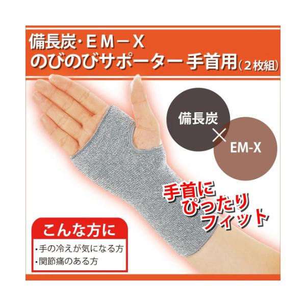 備長炭 EM-X のびのびサポーター 手首用 2枚組 備長炭 遠赤外線パワー 健康 免疫力 抗菌性 通気性 湿気 吸収 保湿性 調湿 のびのび構造 心地 Eclea 爆売 爆買