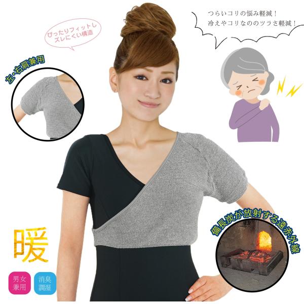まとめ買い 2枚 備長炭 EM-X らくらく肩保温サポーター 片方用 備長炭 遠赤外線パワー 健康 免疫力 抗菌性 通気性 湿気 吸収 保湿性 Eclea 爆売 爆買
