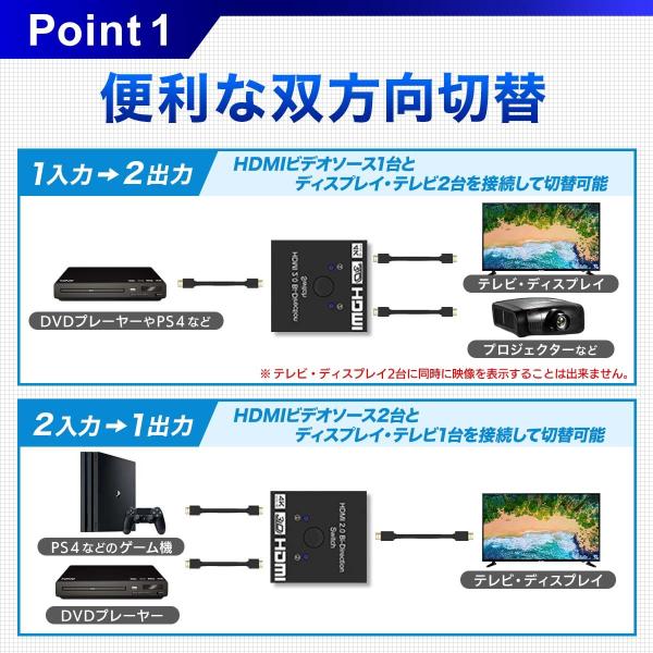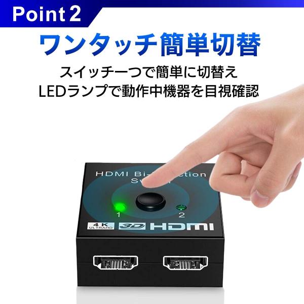HDMI 切替器 分配器 セレクター 4K スプリッター 2入力1出力 1入力2出力 ディスプレイ モニター パソコン ゲーム 2台 双方向 爆買