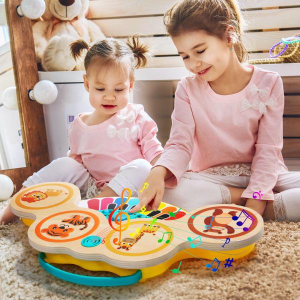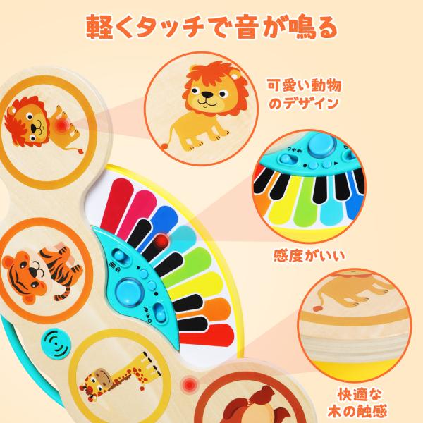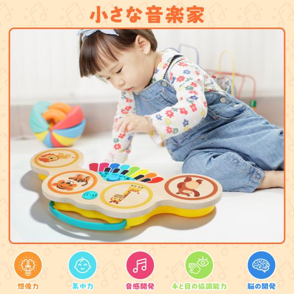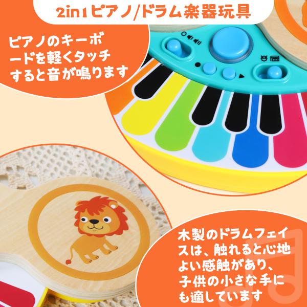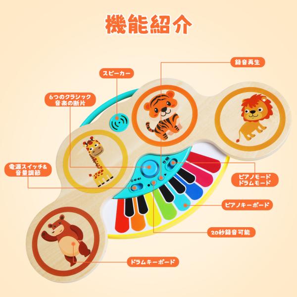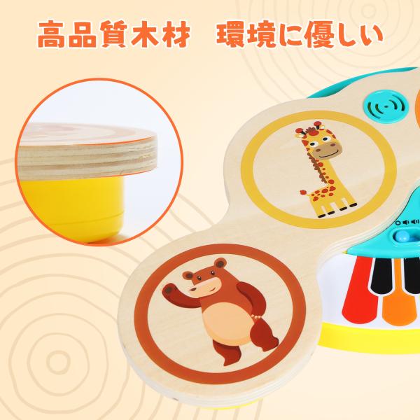 ピアノ おもちゃ Cute Stone 2in1遊び方 楽器 おもちゃ 高品質木材 ドラム 子供おもちゃ 4種類ドラムモード 6曲の音楽 録音再生 多機能 知育玩具 プレゼント