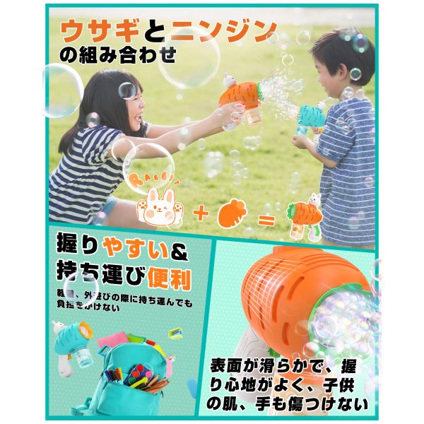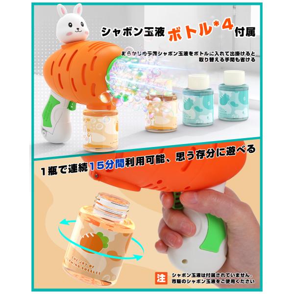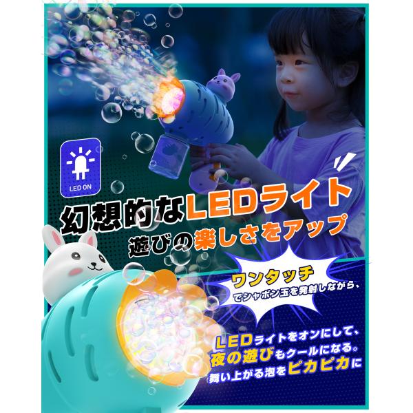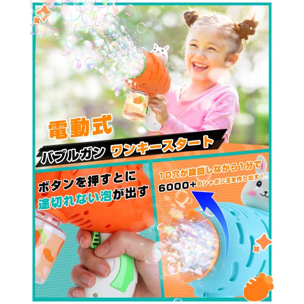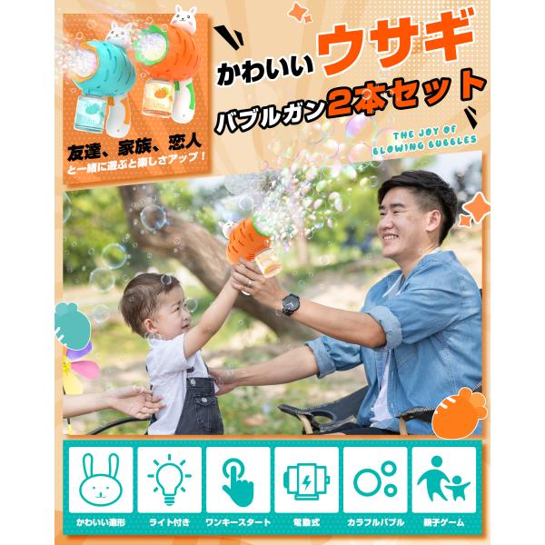 シャボン玉 電動 バブルガン EagleStone おもちゃ 電動シャボン玉 2本セット 予備ボトル4瓶 10泡穴付き LEDライト バブルガンマシン シャボン玉マシーン