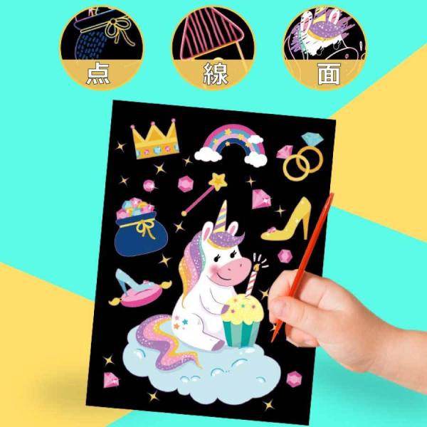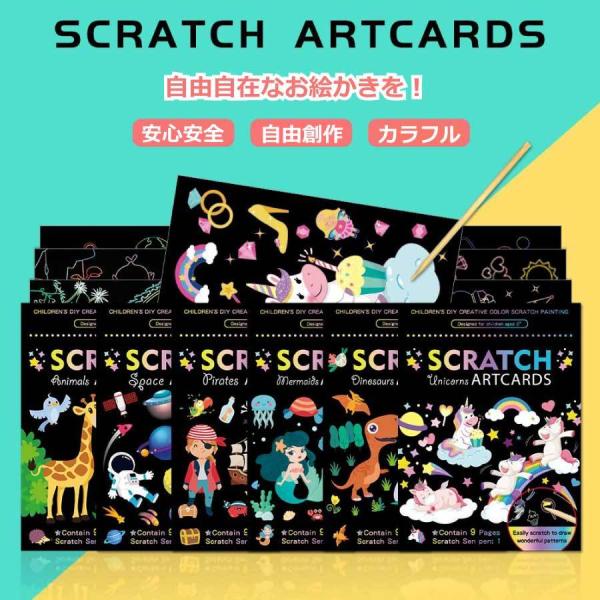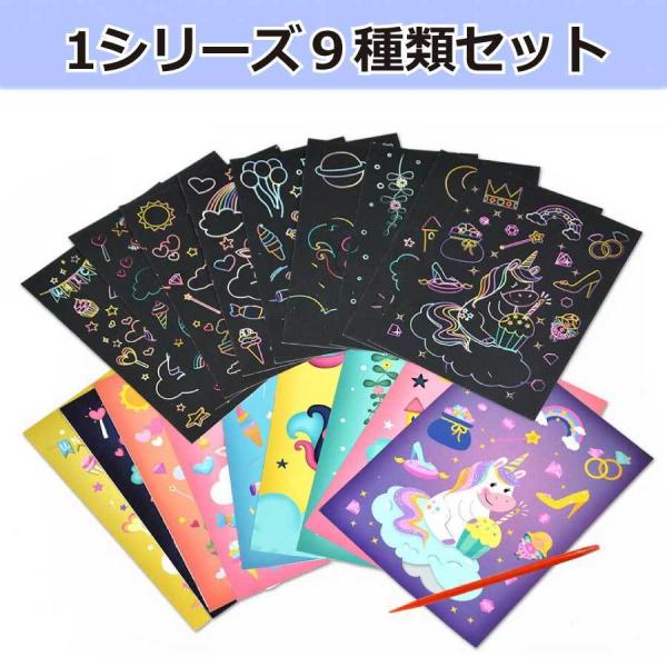 スクラッチアート 自由創作 9枚セット 塗り絵 ペーパーアート 知育 玩具 お絵描き 削る おうち時間 子供 専用竹ペン付け 女の子 男の子 クリスマス 送料無料