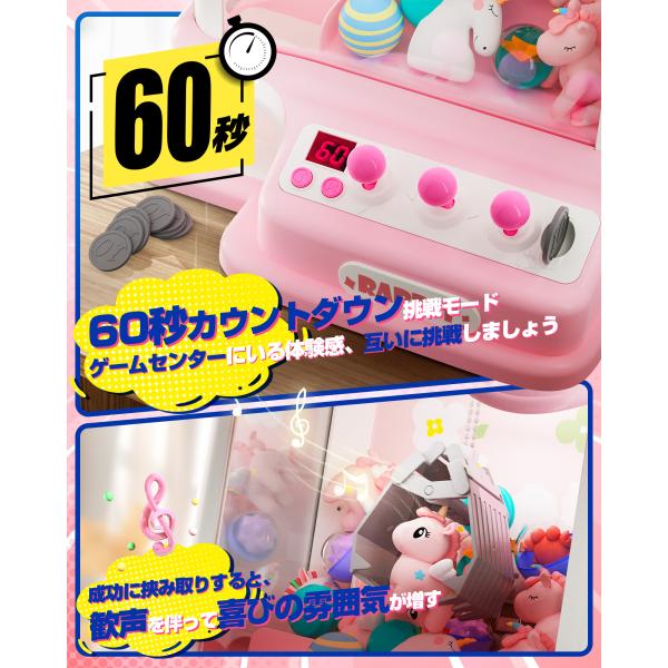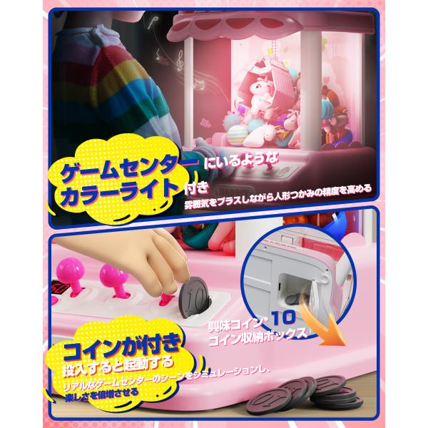 クレーンゲーム おもちゃ 知育玩具 可愛なデザイン カラフルなライト 雰囲気音楽付き 家庭用 卓上ゲーム ぬいぐるみ カプセル 親子ゲーム プレゼント Skirfy