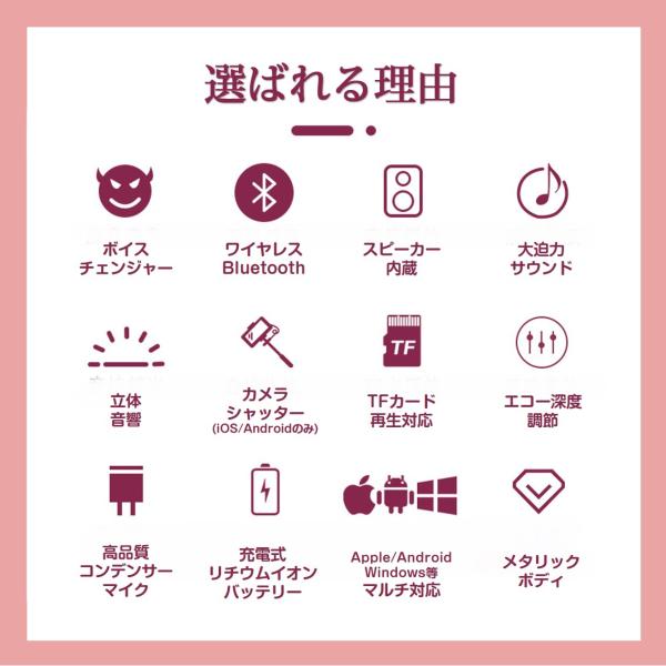 カラオケマイク ワイヤレスマイク Bluetoothマイク スピーカー付き 高音質 USB充電 録音 ボーカルカット エコー 子供 クリスマス 誕生日 パーティー プレゼント