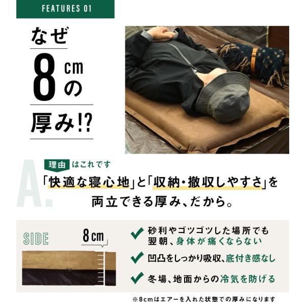 インフレーターマット キャンピングマット 車中泊 マット エアーマット 1枚売り 厚さ8cm 自動膨張式 アウトドア寝具 樅