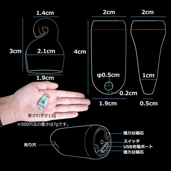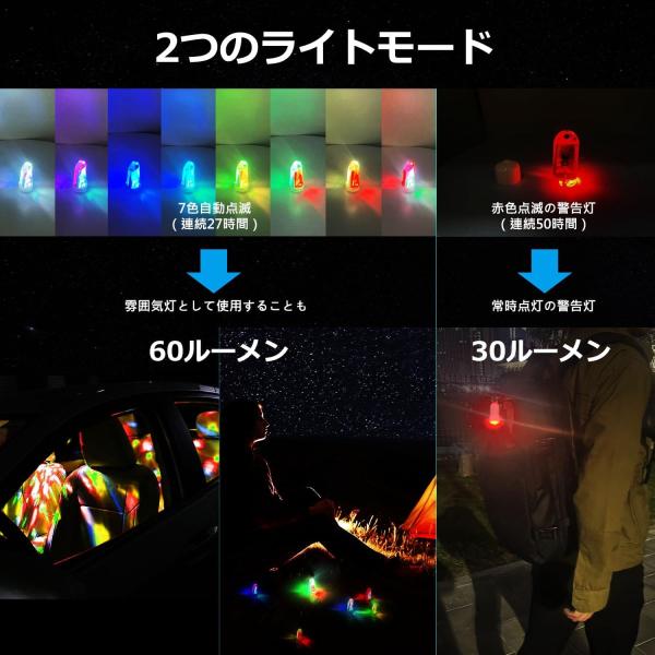 DOKEEP 超ミニLEDライト 4個セット ledランタン カラフル 超軽量 11g USB充電式 EDC 高輝度 ミニ懐中電灯 2モード 60ルーメン 防水 超小型 ミニ投光器