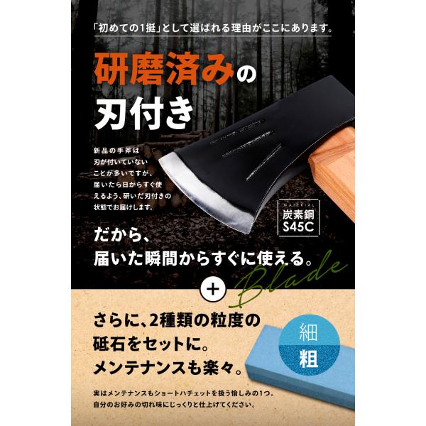 RiveRock(リバロック) ショートハチェット 薪割り手斧 レザーカバー付き キャンプ 名栗加工 帆布バック 研磨・刃付き 斧 アックス 砥石付き 収納バック
