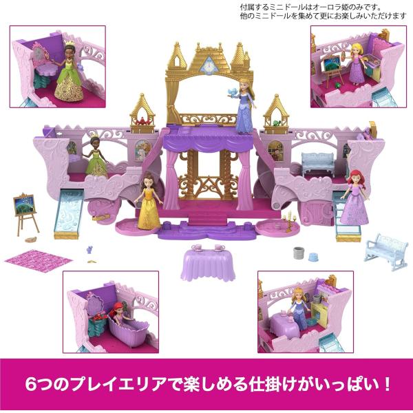 マテル ディズニープリンセス ピンクのおしろ〜ばしゃがおしろにへんしん〜 きせかえ人形 ハウス ままごと ごっこ遊び オーロラ姫 ミニドール付き ピンク HWX17