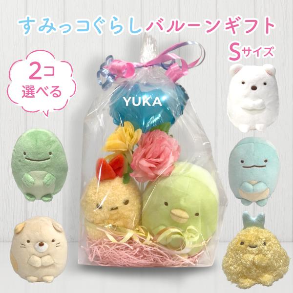 すみっコぐらし ぬいぐるみ Sサイズ バルーン アレンジ 電報 卒園 バルーンブーケ ミニ 電報 入園 ギフト お祝い 入学