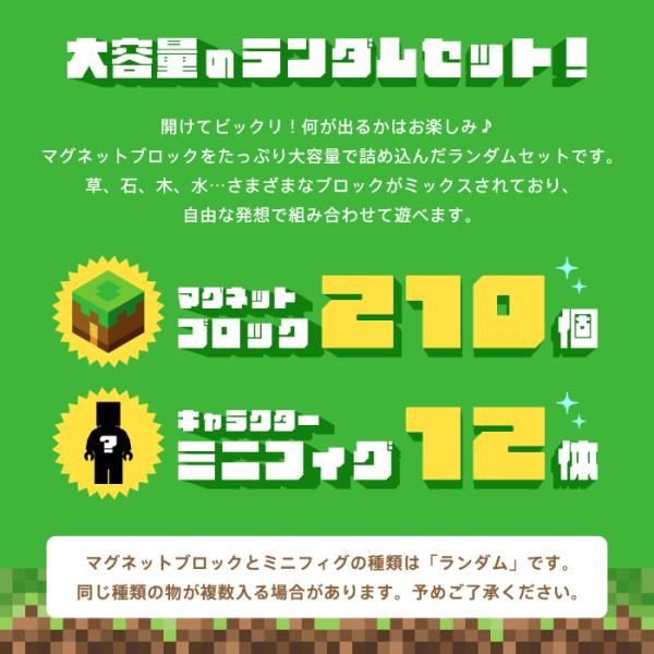 最安値に挑戦【超大容量 マグネットブロック 210個 ミニフィグ12体 ランダム セット】[新品アウトレット] 磁石 マグネット ブロック マインクラフト風