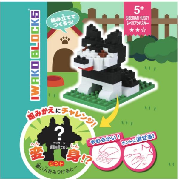 イワコーブロックス ブロック消しゴム シベリアンハスキー おもしろ消しゴム キッズ こども プレゼント 日本製 消しゴムブロック 小学生 知育 玩具