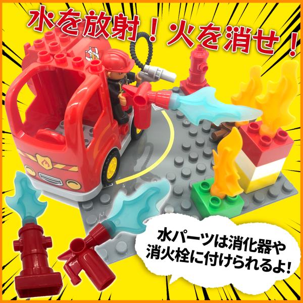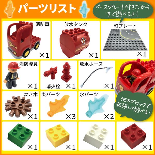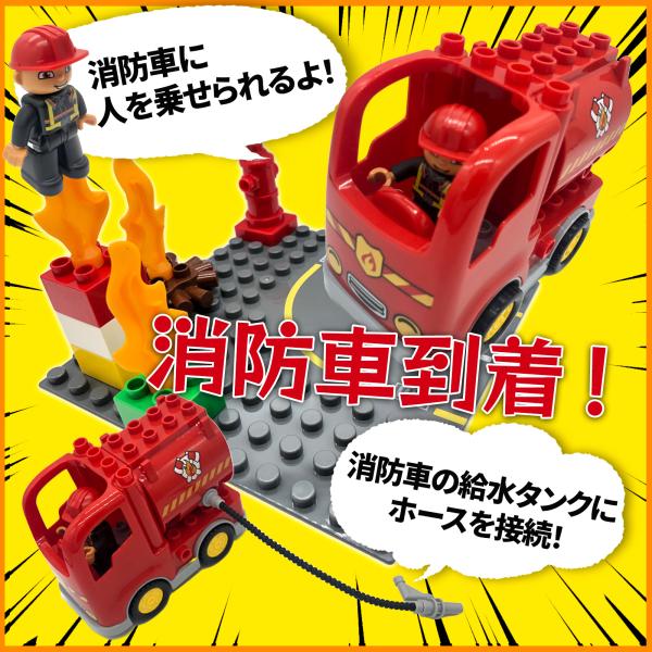 ブロック おもちゃ デュプロと同じサイズ Sunwards公式 消防車ブロック デュプロ アンパンマンブロック 消防車 おもちゃ 基礎板 16PCS
