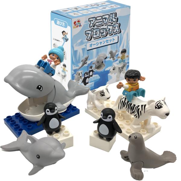 ブロック おもちゃ デュプロと同じサイズの動物セット Sunwards公式 デュプロ互換 アンパンマンブロック ブロックラボ (オーシャンセット)