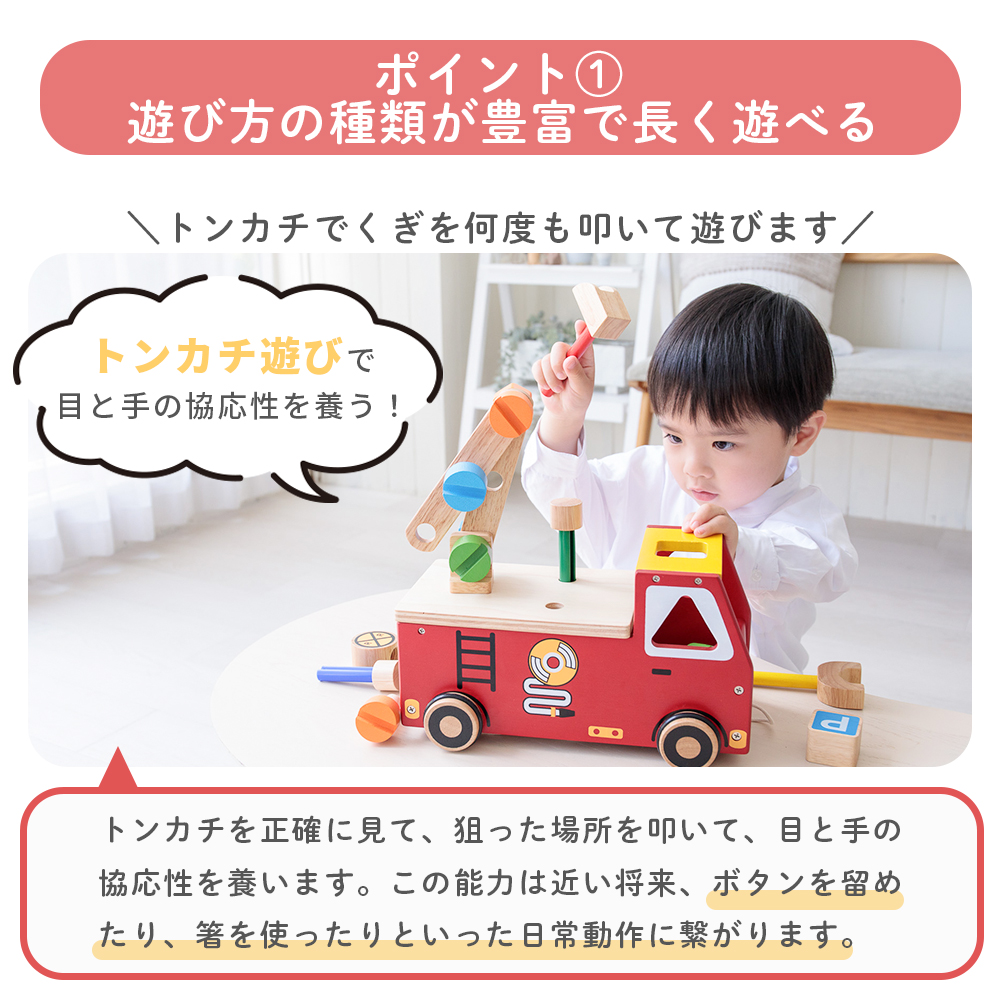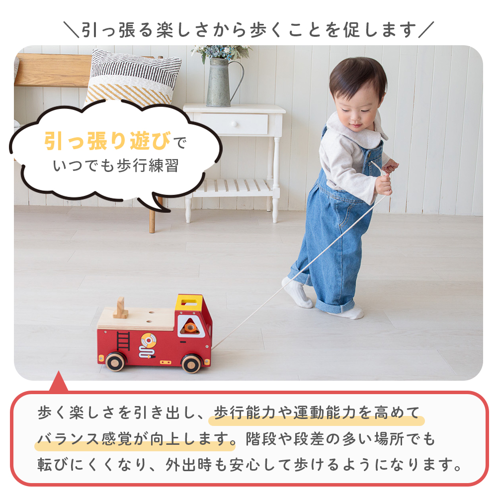 I'm TOY アクティブ消防車 アイムトイ おもちゃ 車 型はめ 大工 プルトイ 積木 積み木 知育 玩具 木 の 2歳 3歳 誕生日 プレゼント edute