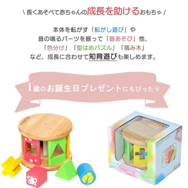 edute KOROKOROパズル おもちゃ 型はめ 積み木 知育 知育玩具 1歳 子供 女の子 男の子 プレゼント 安全 出産祝い ベビー 赤ちゃん