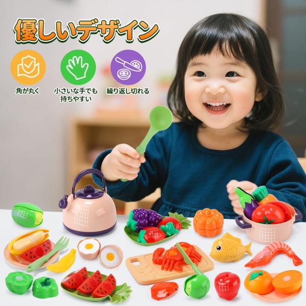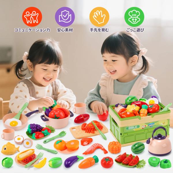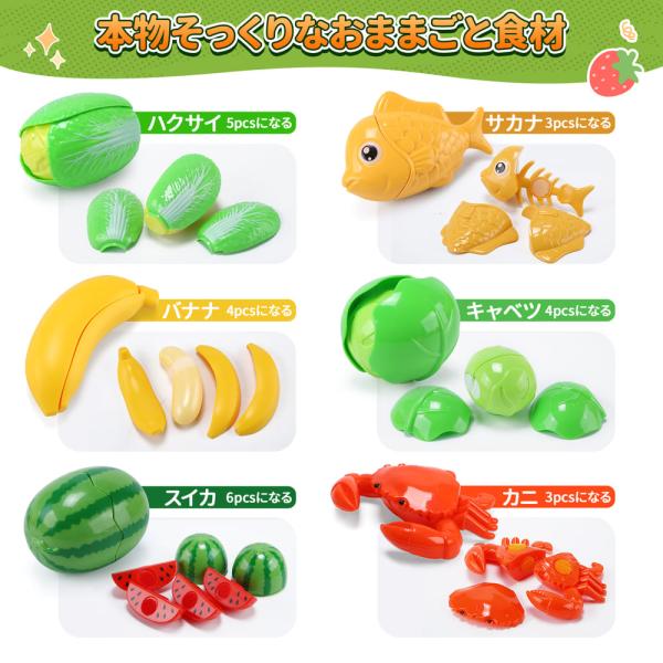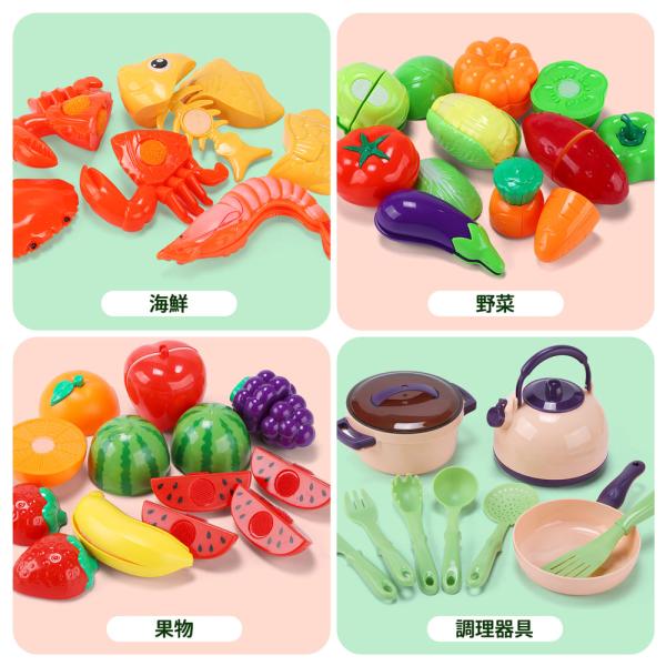 おままごとセット おもちゃ HOLYFUN キッチンセット ごっこ遊び 海鮮 野菜 果物 収納バッグ付け 調理器具 知育玩 お誕生日プレゼント (71点)
