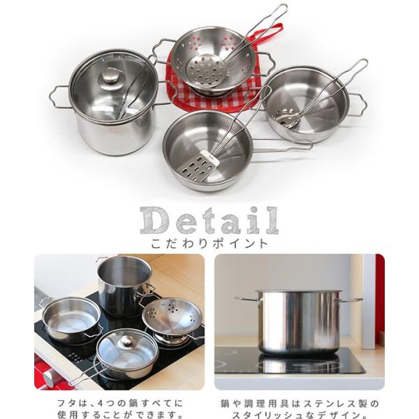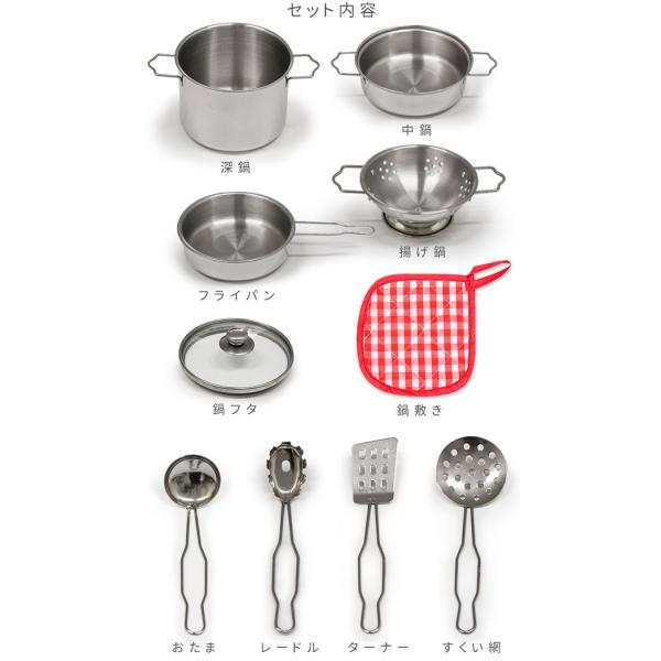 ままごと おままごと 調理器具 セット ステンレス製 鍋 フライパン なべ ナベ キッチン 金属 台所 ギフト梱包 おもちゃ 知育玩具 1年保証 送料無料