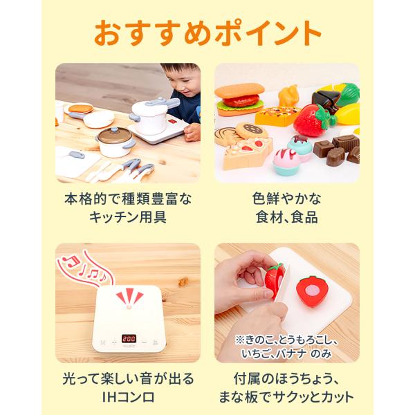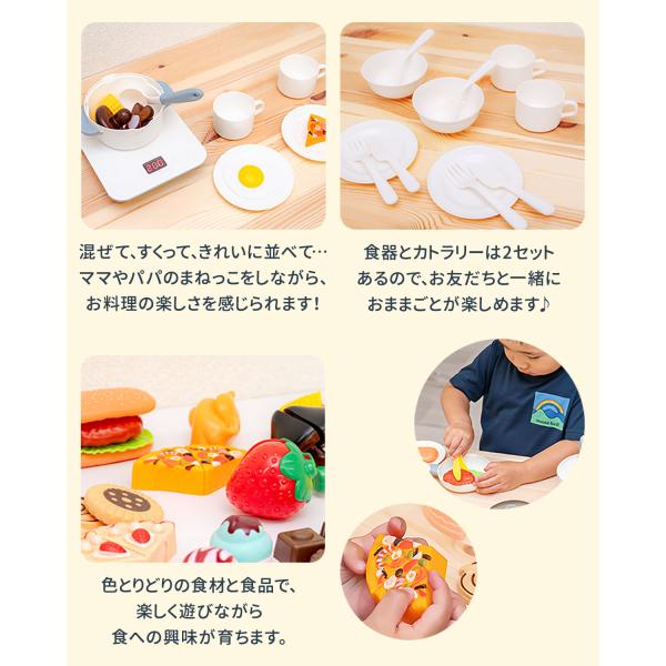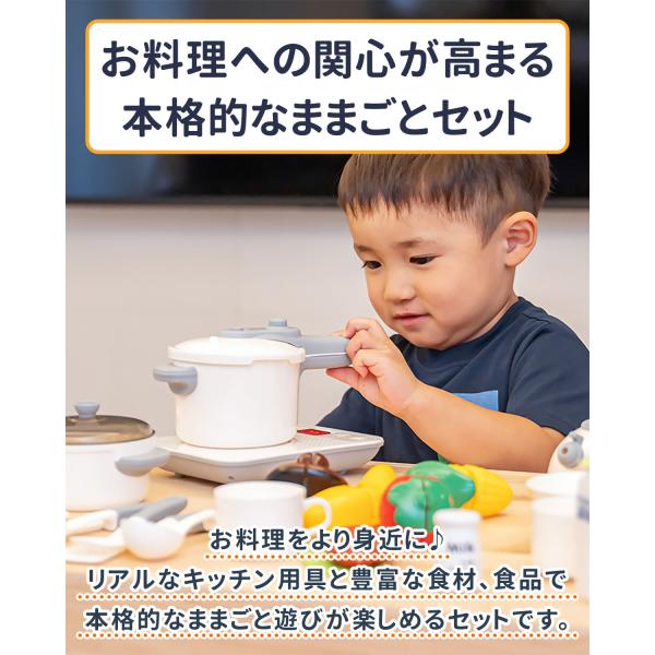 ままごと キッチン 食べ物 49点セット RiZKiZ キッチン用具&野菜セット おままごと 光る 音が鳴る IHコンロ 調理器具 お料理 食材 お菓子 1年保証 送料無料