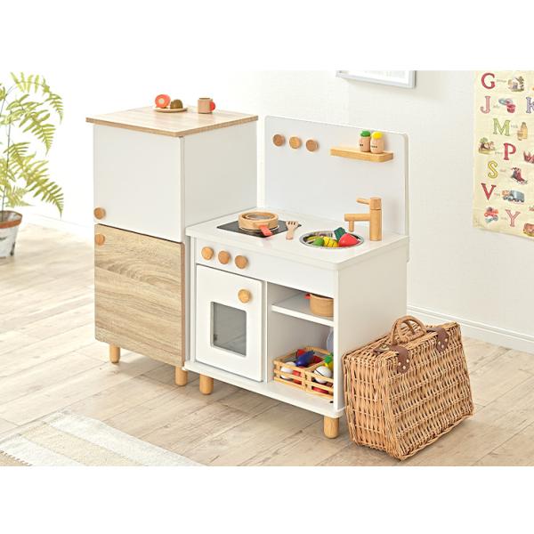ままごと おままごと ままごと冷蔵庫 背面ホワイトボード エッグホルダー ドアポケット おもちゃ ままごとキッチン 知育玩具 木製 冷蔵庫 poet(ポエト) 2色対応
