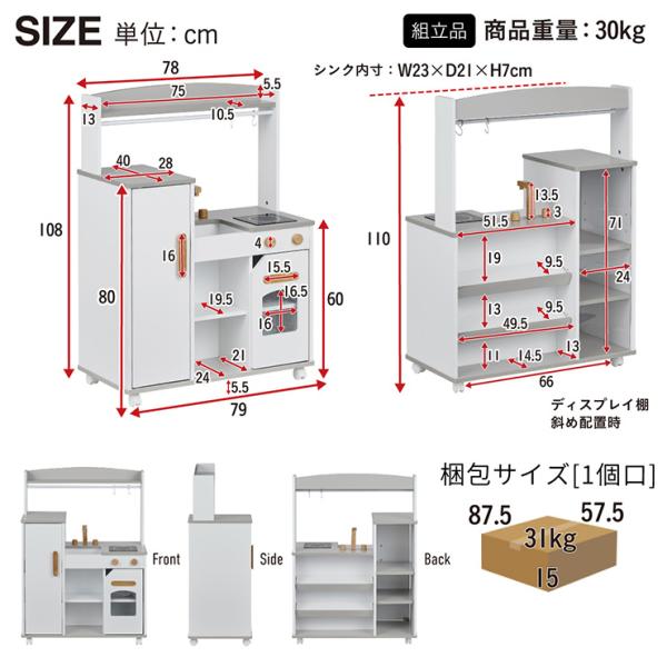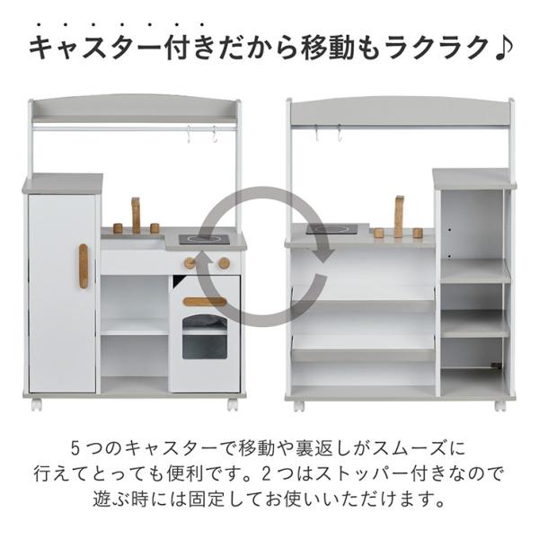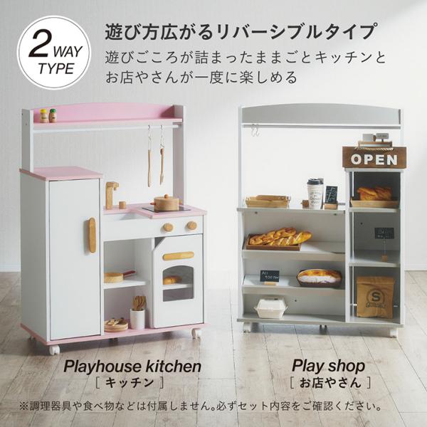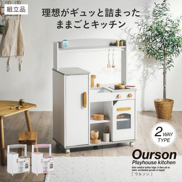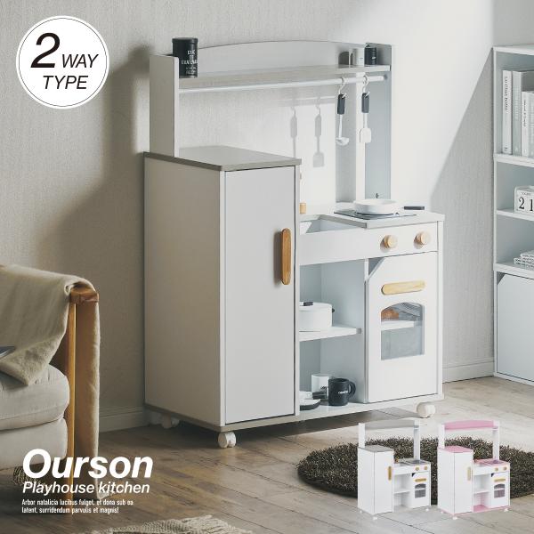 ままごとセット 木製 おままごと キッチン お店屋さん ごっこ遊び おしゃれ おもちゃ 収納 キャスター プレゼント リバーシブルタイプ Ourson(ウルソン) 2色対応