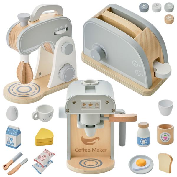 おままごとセット ままごとせっと コーヒーマシーン/トースターセット/ペストリーミキサー 食べ物 木製 木 食材 調理器具 おしゃれ Sugar(シュガー) 3商品セット