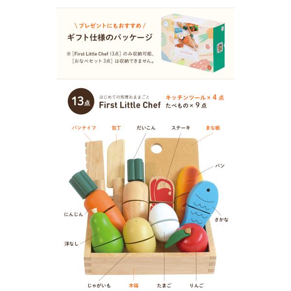 おままごと ままごとグッズ おままごとグッズ 知育玩具 木のおもちゃ 調理器具 家事 野菜 果物 パン 魚 肉 ファーストリトルシェフ13点セット+おなべ3点セット