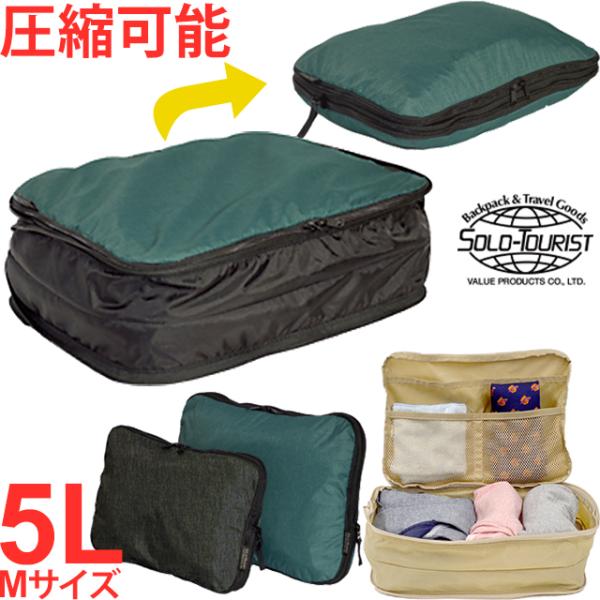 ソロツーリスト 圧縮袋 衣類圧縮収納ポーチ Mサイズ 掃除機不要 トラベルポーチsolo-tourist 圧縮式衣類収納ケース 5L CC-M 1点迄メール便OK(va0a349)