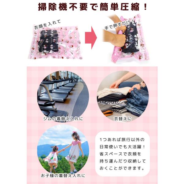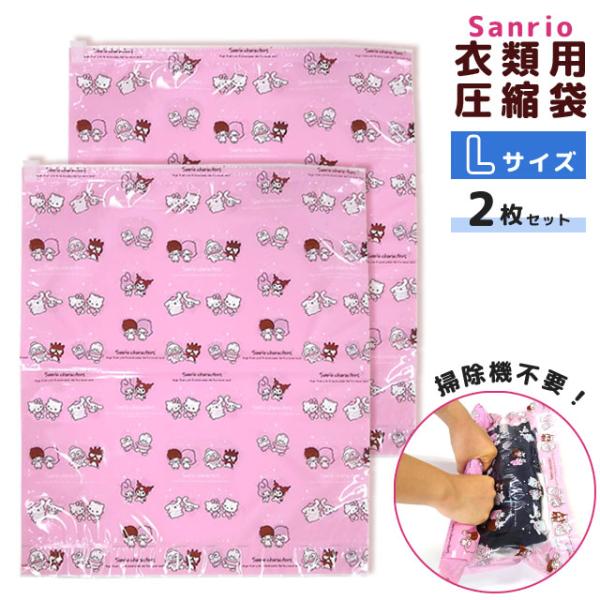 サンリオ 衣類圧縮袋 Lサイズ 2枚セット 衣類用 圧縮パック 旅行用 トラベル 掃除機不要 日本製 ハイタッチ柄 キャラクター 2点迄メール便OK(va1a387)