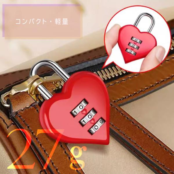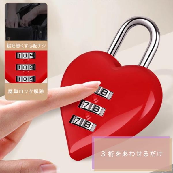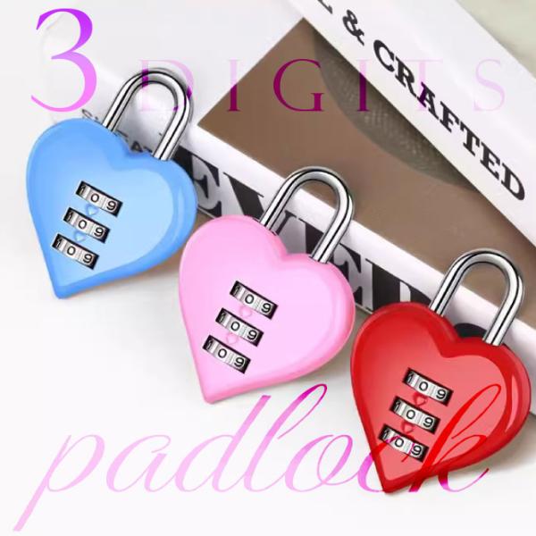ハート 南京錠 3桁ダイヤル式 ハート型ダイヤルロック 盗難防止 防犯 セキュリティ ロッカー 旅行かばん キャリーバッグ用鍵