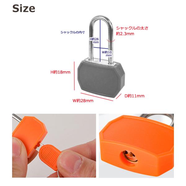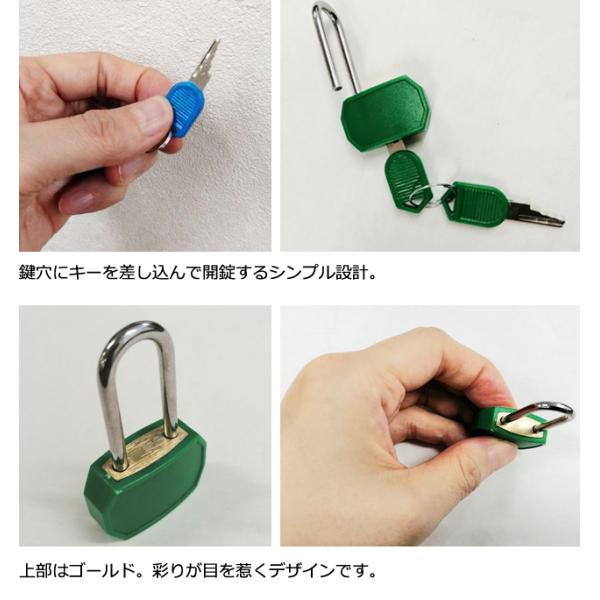 南京錠 鍵 ミニ 小型 カラフル キャンディ カラー シリンダー式 ロング シャックル 八角 簡単 簡易 キー ロック 鍵式 ロッカー GPT 25点迄メール便OK(gu1c841)