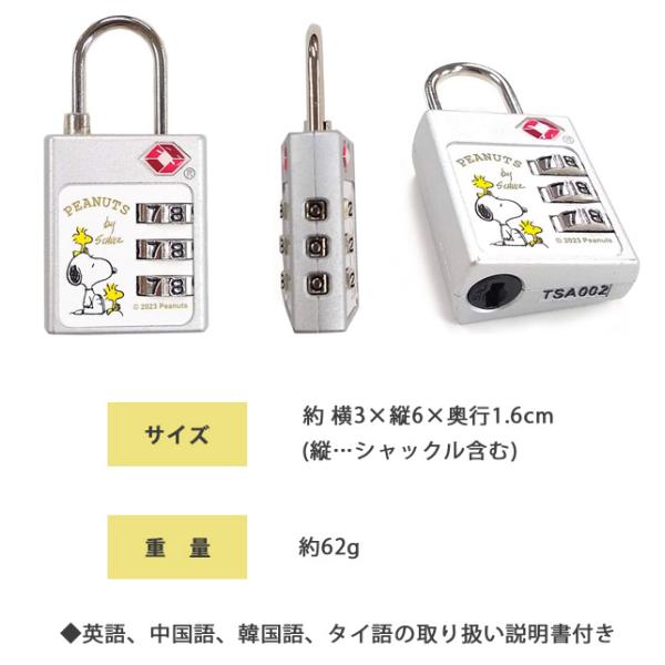 スヌーピー 南京錠 ダイヤル式 TSA 3ダイヤルロック 3桁 鍵 TSAロック 海外旅行 旅行グッズ トラベル ポスト ロッカー キャラクター 5点迄メール便OK(va1a378)
