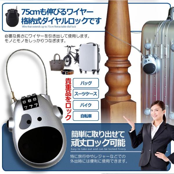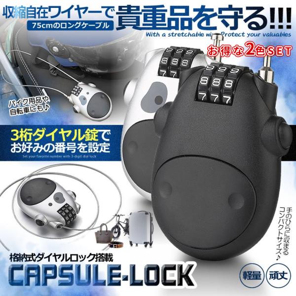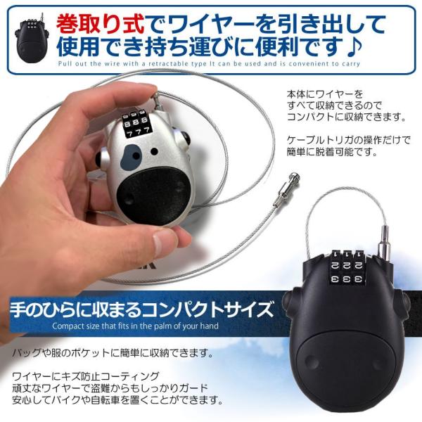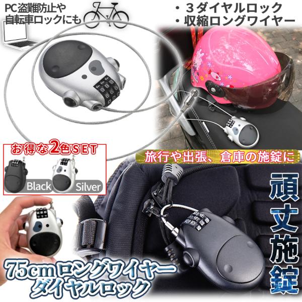 収縮 ワイヤー ダイヤルロック 2色SET ブラック シルバー 伸びるワイヤー ロック ダイヤル式 鍵 バイク 盗難防止 自転車 キャリーケース 頑丈 防犯 KAGIWIRE-SET