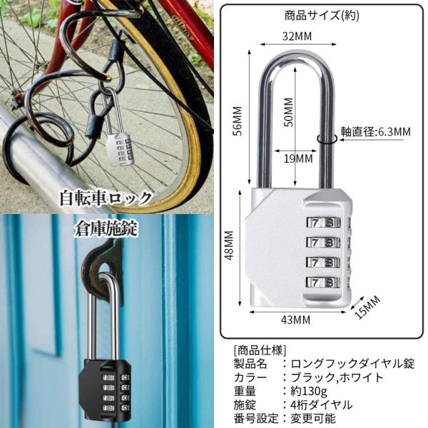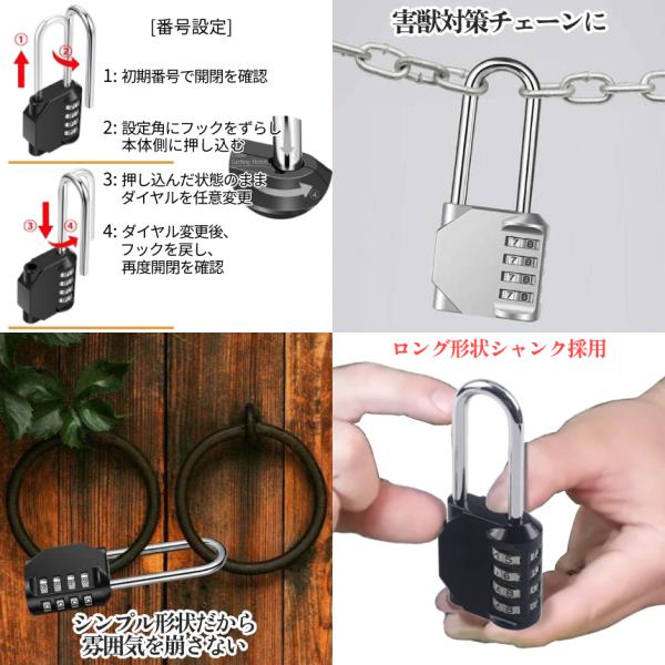 南京錠 ダイヤル式 ロング フック ダイヤル ロック 4桁 ナンバー 可変式 ワンタッチ 開閉 暗証番号 設定 可能 LOCK 鍵 カギ ダイヤル錠 小型 コンパクト RONJO