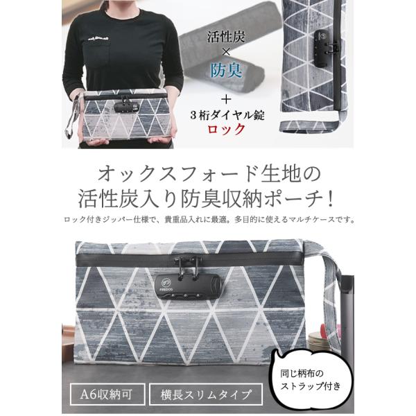 「レビュー記入でメール便送料無料」防臭 防犯 3桁ダイヤル錠付 GPT 活性炭 オックスフォード 薄マチポーチ 脱臭 A6 gu1b400-mail(gu1b401) (1通につき1点迄)